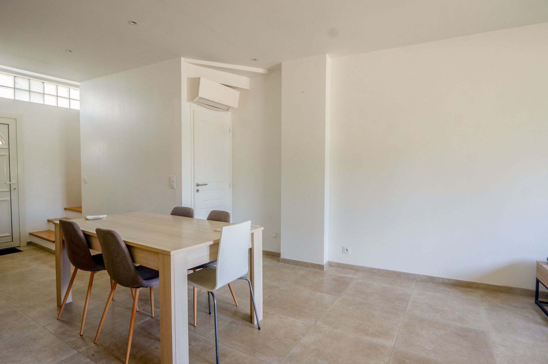 Cette maison (ou appartement individuel qui mets en avant tout les avantages d'un grand duplex, sans les inconvénients de la copropriété) de 116m² se compose au RDC, d'une entrée sur séjour avec cuisine américaine entièrement équipée, des WC séparés et un accès à 2 terrasses, une à l'avant et une à l'arrière.